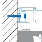 Knopfgriff mit BohrungArt.Nr.: 3065 Freie Positionierung nach Wunsch. Knopfgriff wird mit Schrauben lose beigefügt. ClipsgriffArt.Nr.: 3300 Direkt auf der Sprosse 1228 angebracht. Einbautiefe beachten.