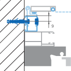 Hinweis: Bei Varianten mit 3-seitigem Einbaurahmen entfallen die Befestigungen an der Unterseite.