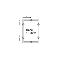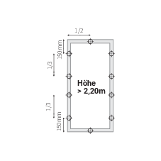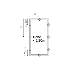 Bei Varianten mit 3-seitigem Einbaurahmen entfallen die Befestigungen an der Unterseite.